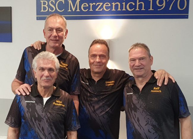 Der Aufstieg aus der 1. Landesliga in die Verbandsliga des Billardverbandes Niederrhein ist der 1. Dreibandmannschaft des BSC Merzenich mit der Besetzung: Thomas Coenen, Ralf Pentoch, Nico Theodorou, Heiner Baerecke, Katja Titze, Peter Wickenkamp und Norbert Roßbroich nicht mehr zu nehmen. Am letzten Spieltag ist die Mannschaft, die mit 2:6 gegen den BC Neumühl verlor,…